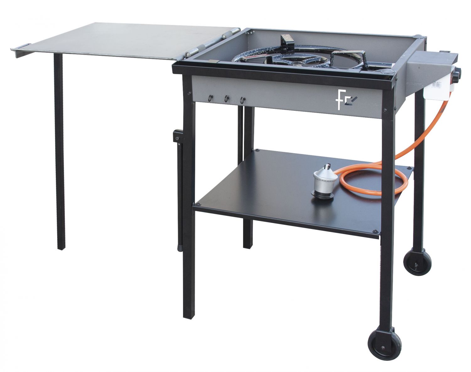 Fabricado en 1,5mm. de espesor. Plancha de 5mm. de espesor. Incluye paellero gas vitrificado de 400mm. Incluye regulador y manguera. Recogegrasas. Bandeja central. Dos ruedas. Pintura anticalórica. Peso: 36 Kg. Plancha:600x510mm. Medidas Articulo 770X530X900mm. Medidas Embalaje 800X570X275mm. Productos en la misma categoría