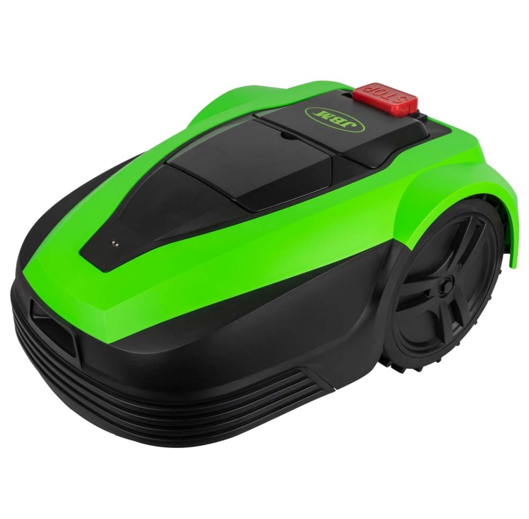 Marca: JBM Modelo: Robot cortacésped automático Batería: 28V – 2.5 Ah Li-ion Superficie recomendada: Hasta 800 m² Ancho de corte: 18 cm Altura de corte: Ajustable de 20 a 60 mm Autonomía: 60-90 min Tiempo de carga: 60 min Sensores: Obstáculos, inclinación, lluvia Nivel sonoro: < 65 dB Incluye: Estación de carga, cable perimetral, estacas, cuchillas de repuesto y manual